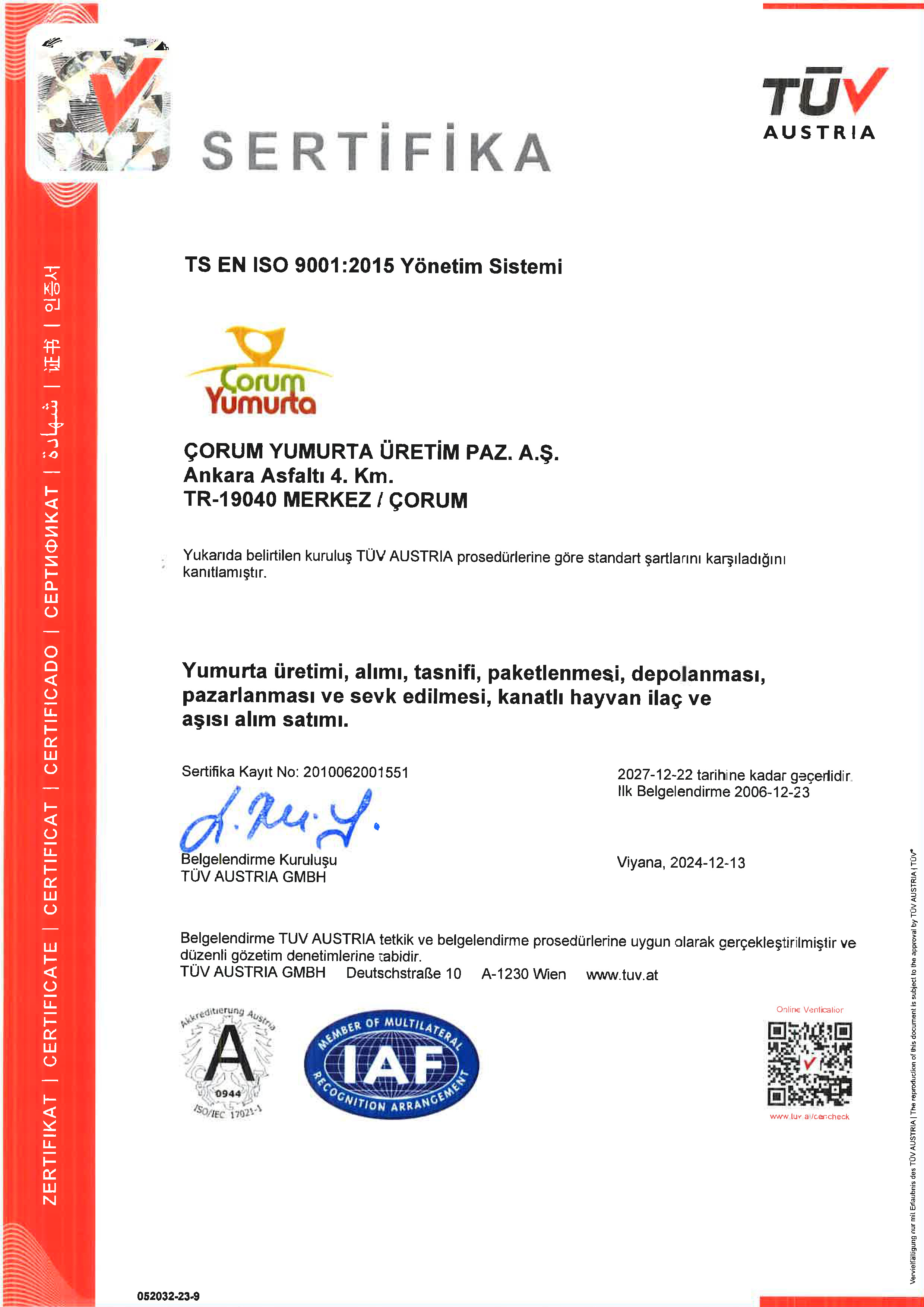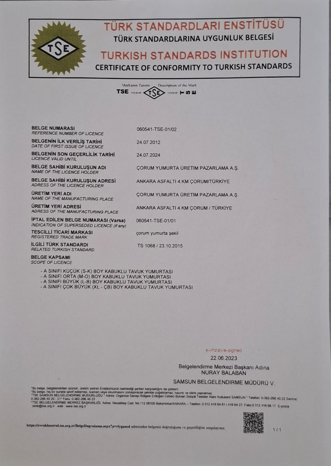 Çorum Yumurta Üretim ve Pazarlama A.Ş.