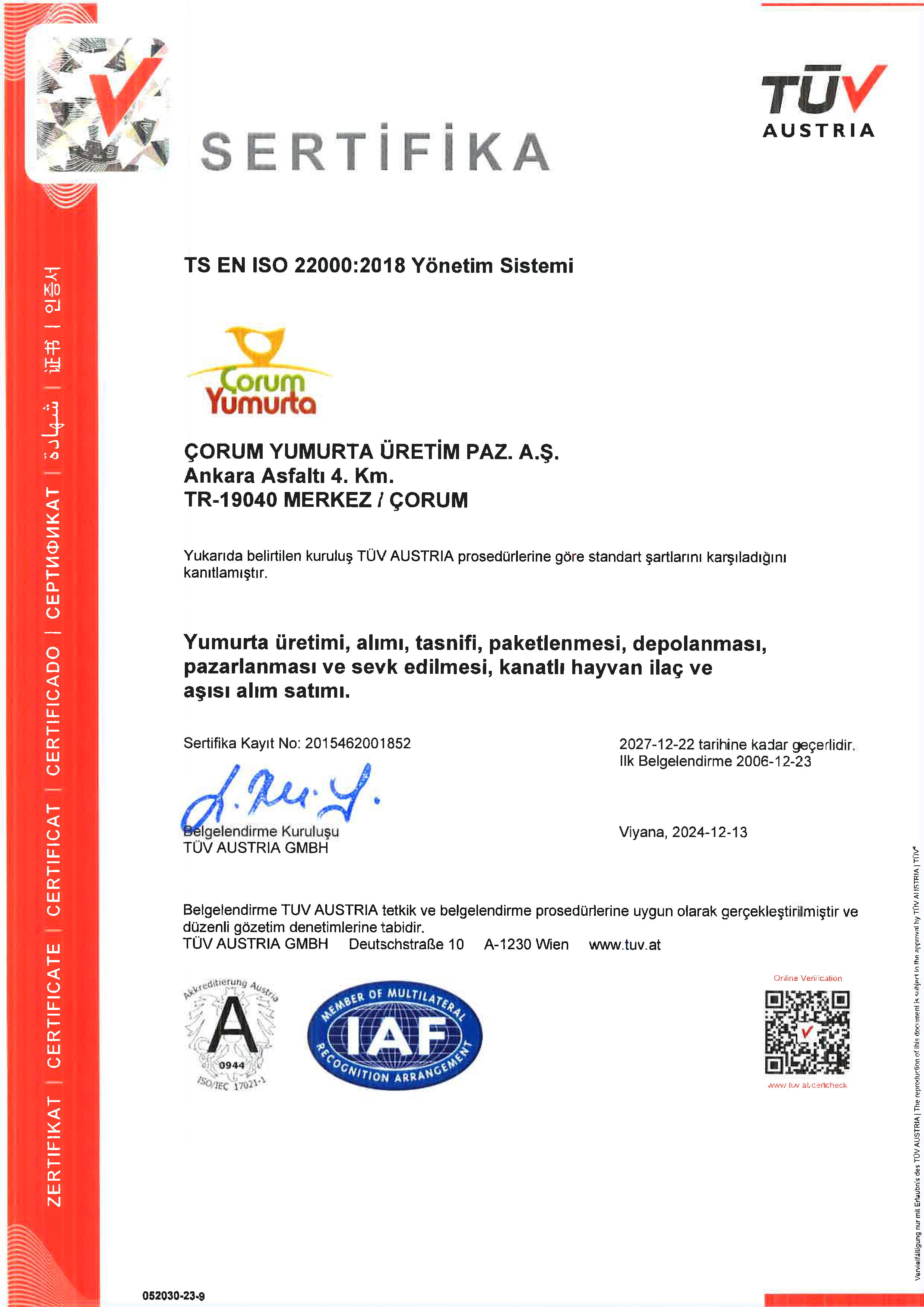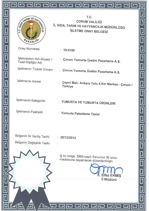 Çorum Yumurta Üretim ve Pazarlama A.Ş.